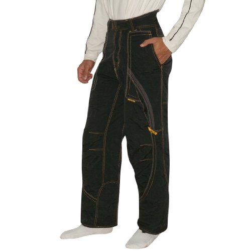- Zipper and two snap-button fly ski pants with medium weight fabric for water and wind resistance and breathability.