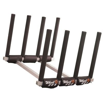 WZ1-SUPR-3 Features: -Convenient rack system holds up to 3 boards, paddles & gear..-SUP board rack only, additional cart pieces sold separately.-Light weight, heavy duty, collapsible aluminum rock frame is marine grade anodized, after fabrication..-Stainless steel hardware..-Soft foam pads on cross-bars and removable divider tubes protect boards..-Frame disassembles for compact storage.-Easily attaches to Wheeleez Kayak Cart-Beach or Kayak/Canoe Cart with Tuff-Tires. Cart sold separately..-Shown with optional Boat Wheeler. Dimensions: -Weight: 11 lbs.-Overall Dimensions: 22'' H x 26'' W x31'' D.