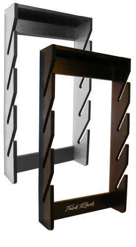 This is a four slot, wall mounted Combination Rack with the Hologram graphics on the side rails. This racks fits any combination of Snow Boards, Water Skis, Wake Boards, Long Skate Boards and Snow Ski's. Slim Water Skis will fit two per slot. This rack measures 40" H x 30"W and assembles in approximately 5 minutes, locking together using just a screw driver. This rack comes with the wall mounting screws.