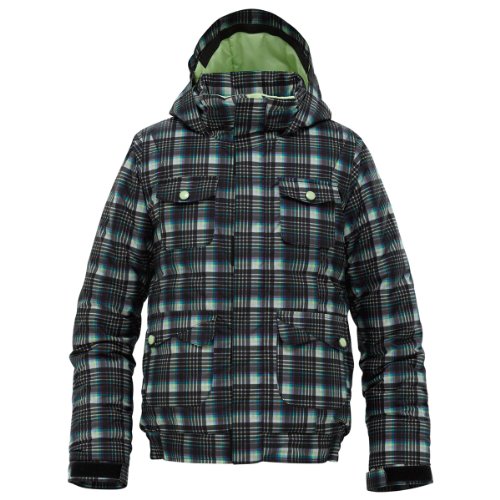Girls Insulated Twist Bomber Ski Snowboard Jacket (XLarge 18, Black Candy Plaid)