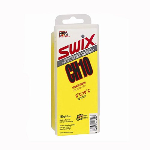Swix CH10 HydroCarbon Ski Wax - 180 grams 2012 - Made from 100% high performance hydrocarbon paraffin, Swix CH10 wax is a warm temperature wax making it a good general base prep wax and travel wax. CH10 is commonly used in hot box or thermo bag treatments since it penetrates the base better than colder temperature waxes. CH10 should also be used for very wet, saturated snow. . Snow Temperature: Slushy, Actual Temperature Range: 50 to 32 degrees Fahrenheit, Wax Form: Block, Composition: Hydro Carbon, Size: 180g, Model Year: 2013, Product ID: 205380