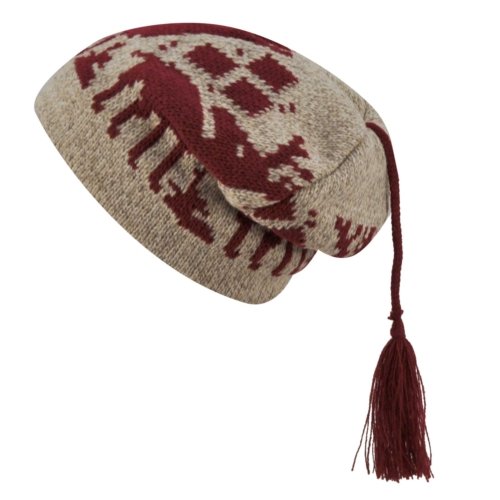 hats.com Ragg Wool Deer Beanie Oatmeal/Maroon/1-Size