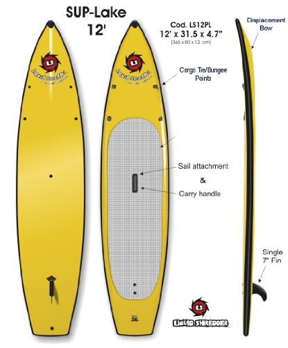 Available in assorted colors: please contact us to choose your preferred color. This SUP board is great for core workouts, racing and paddling in flat water. The Liquid Shredder 12 ft Lake Flatwater is 12' long, 31.5" at its widest point, and with 4.7" thickness.